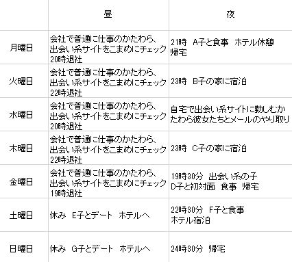 ところがどうだい?7股が5股になったり、3股になったりと、数は変動すれども週1デートの頻度は安定して3年近く続いていったんだな。